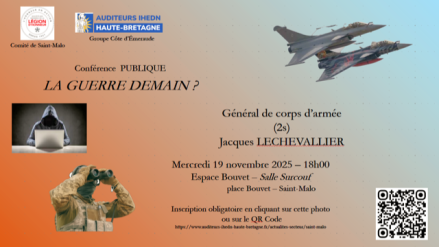 La guerre demain ? ANMONM 35 - Invitation Conférence du 19 novembre 2025 - « La guerre demain ? Dans le cadre de notre partenariat interOrdres, les membres du bureau du Comité malouin de la Société...