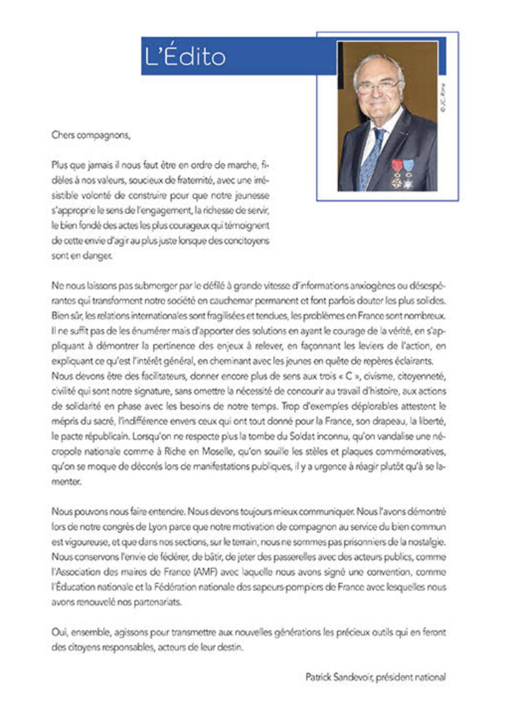 - L'édito du Président Patrick Sandevoir