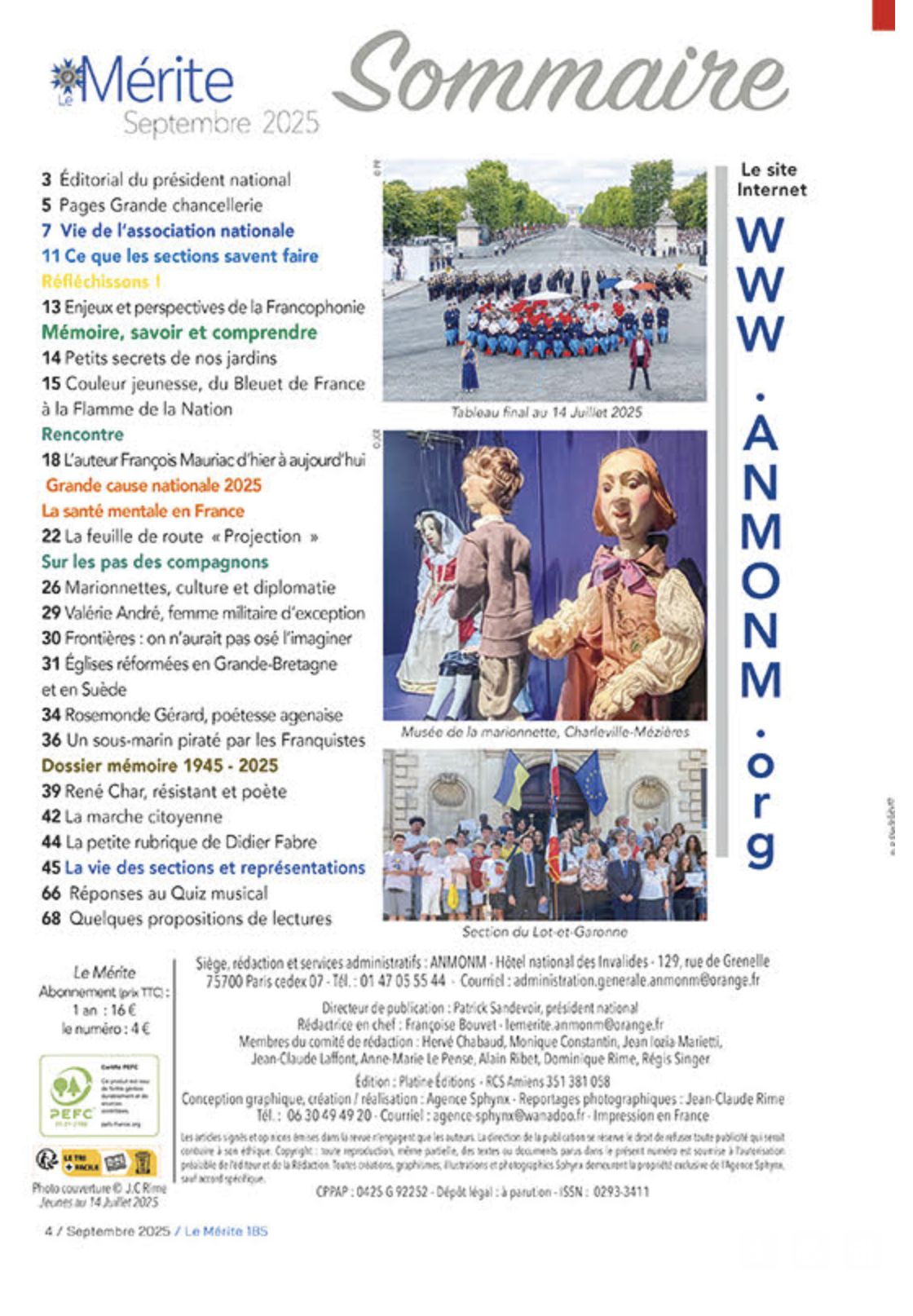 Fidèle au rendez vous de la rentrée le numéro 185 de la revue Le Mérite sera à disposition de ses abonnés qui y retrouveront avec plaisir toutes les rubriques dont on peut consulter le sommaire ci-dessous.