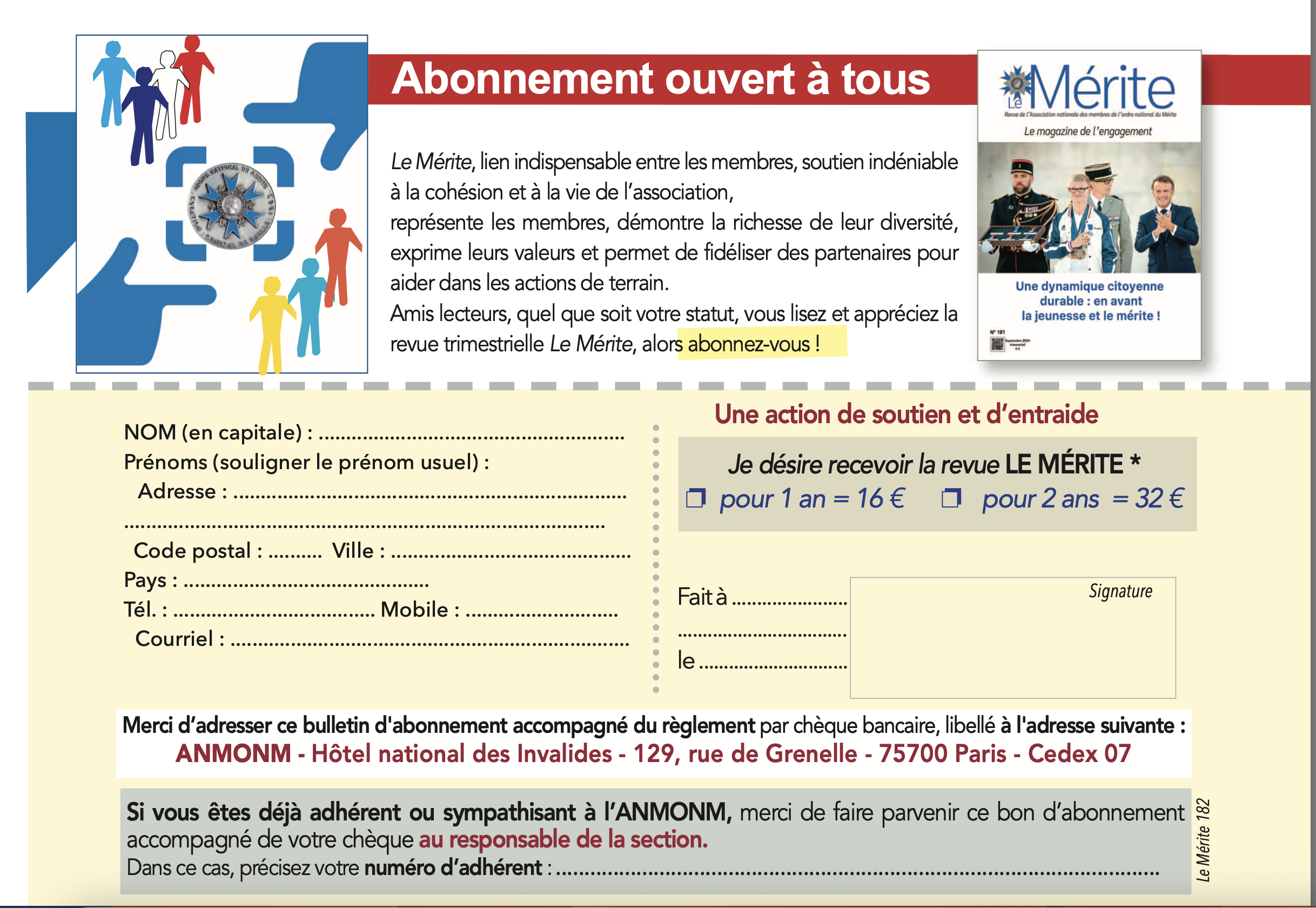 - Un bulletin d'abonnement