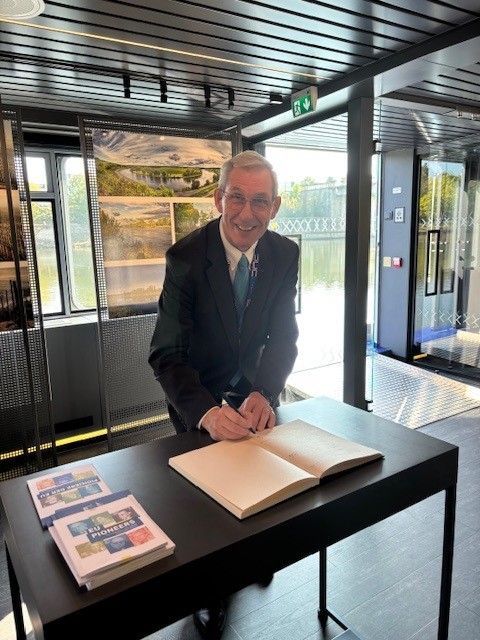 Signature de la convention par Anne Marie Le Pense, présidente de la section Moselle, suivie de celle de l'ambassadeur Christophe Blanchard, puis de Fernand Vanetti, président de la représentation luxembourgeoise et enfin du président national Patrick Sandevoir.